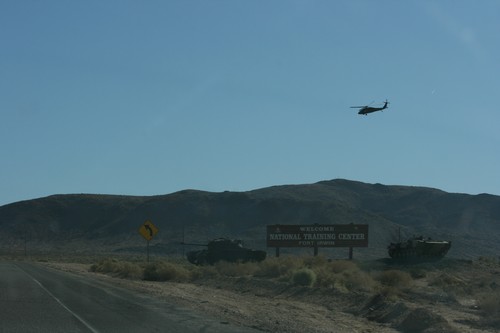 The Goldstone Deep Space Communications Complex is located at Fort Irwin which is the National Training Center where army units do full simulated as close as you can get to real combat training. We were greeted with a Blackhawk fly-over: